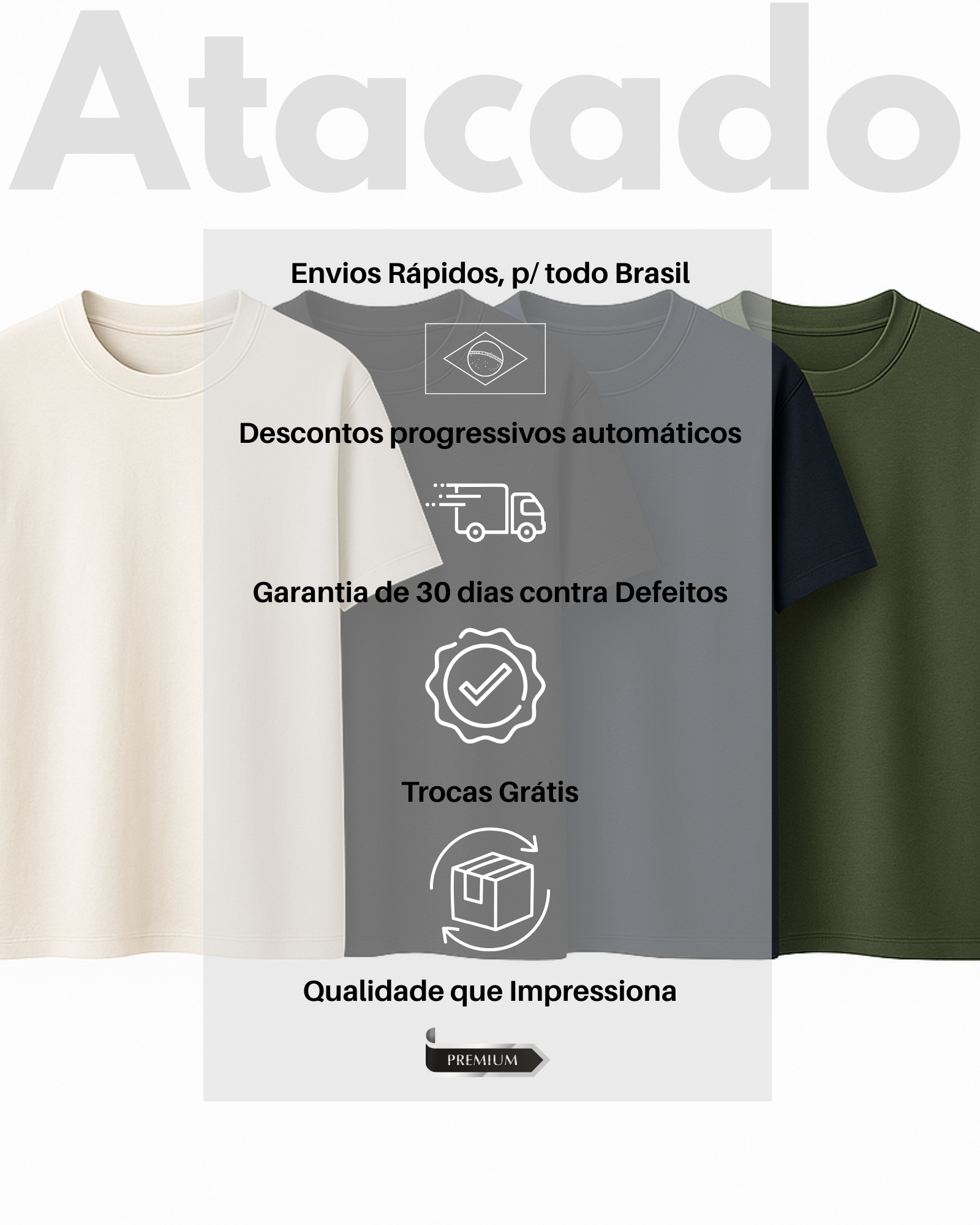 Faixa de: 80 a 100 peças – 20% OFF – R$ 34,24 por unidade